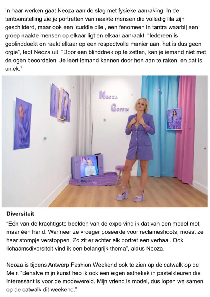 - Kunstenares zet aanraking centraal, HLN, 30.09.23