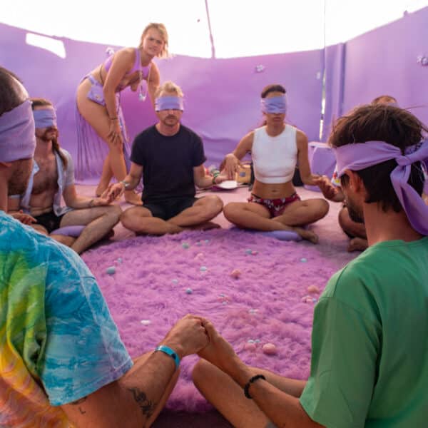 Oei is an immersive VR ritual for five participants, designed to rediscover the safety and power of emotional expression through the body and touch. The techniques we use are inspired by touch-based and body-oriented practices, where touch is employed as a tool to promote well-being.